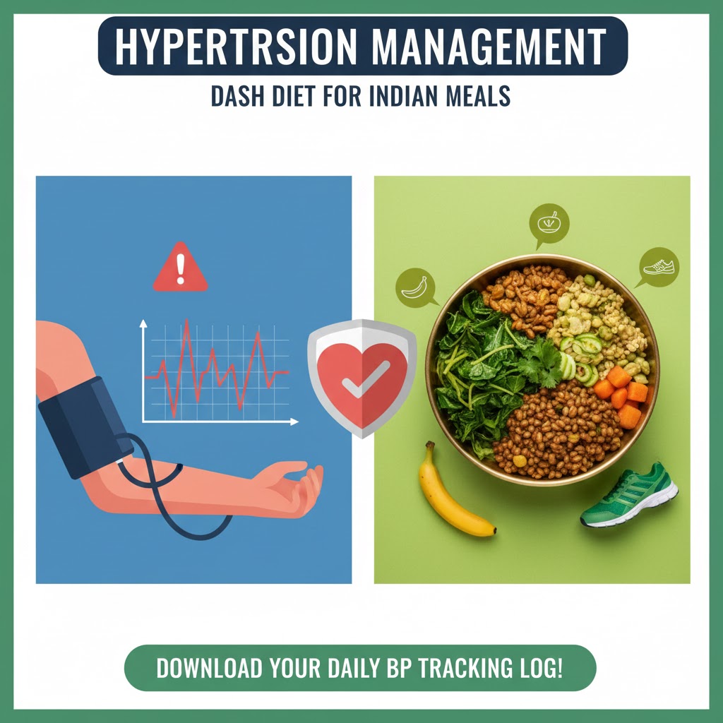 Learn how to manage High Blood Pressure through the world-renowned DASH Diet tailored for Indian meals. Discover low-sodium recipes, the power of Potassium-rich foods, and lifestyle changes that can reduce your dependence on BP medication. Includes a daily BP tracking log and salt-substitution guide.
